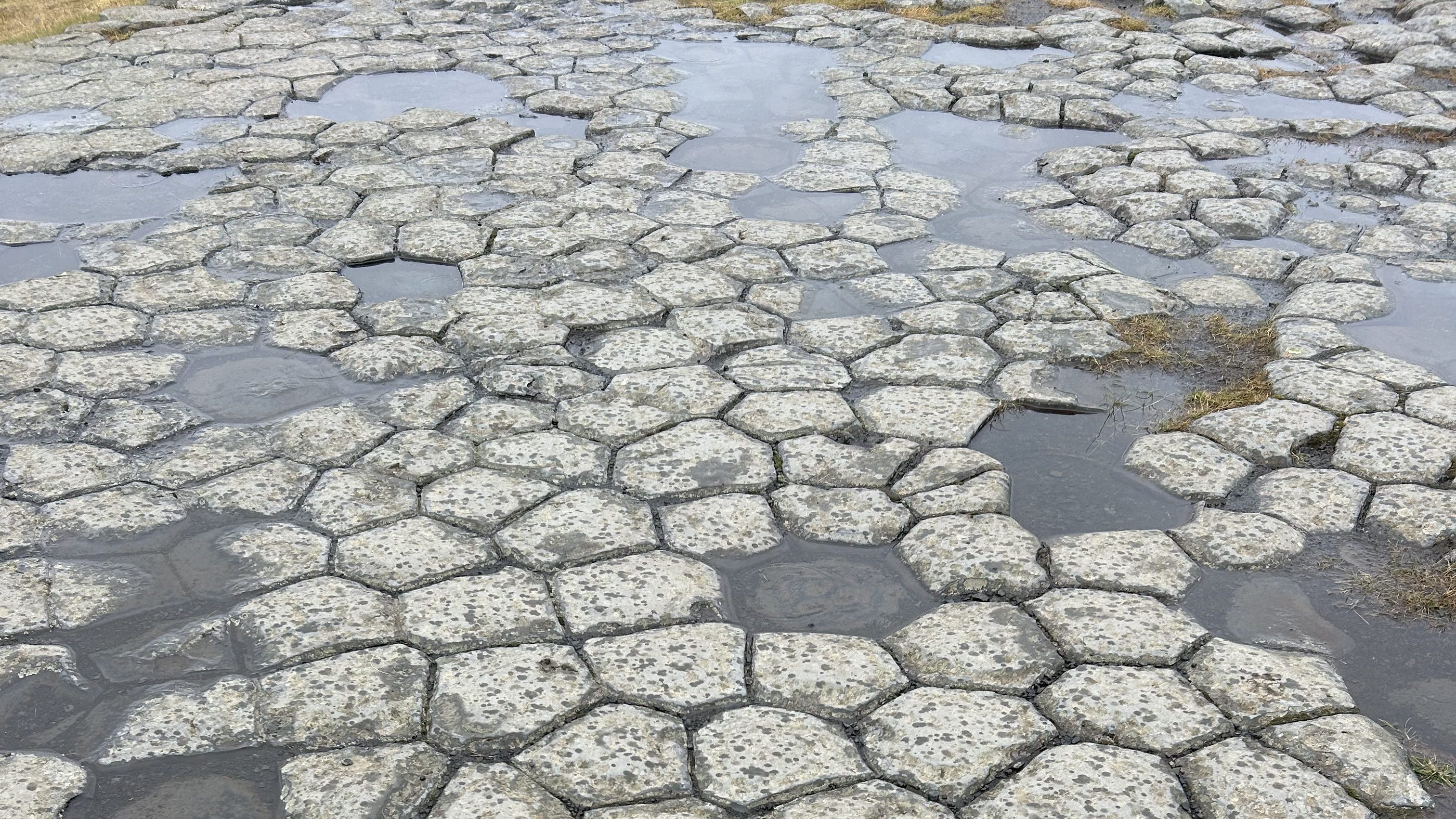 Las columnas siempre son perpendiculares a la superficie, ya que se crean verticalmente a la colada de lava y cuando se enfría se agrieta en estas columnas hexagonales. Aunque hay variaciones en el número de lados.