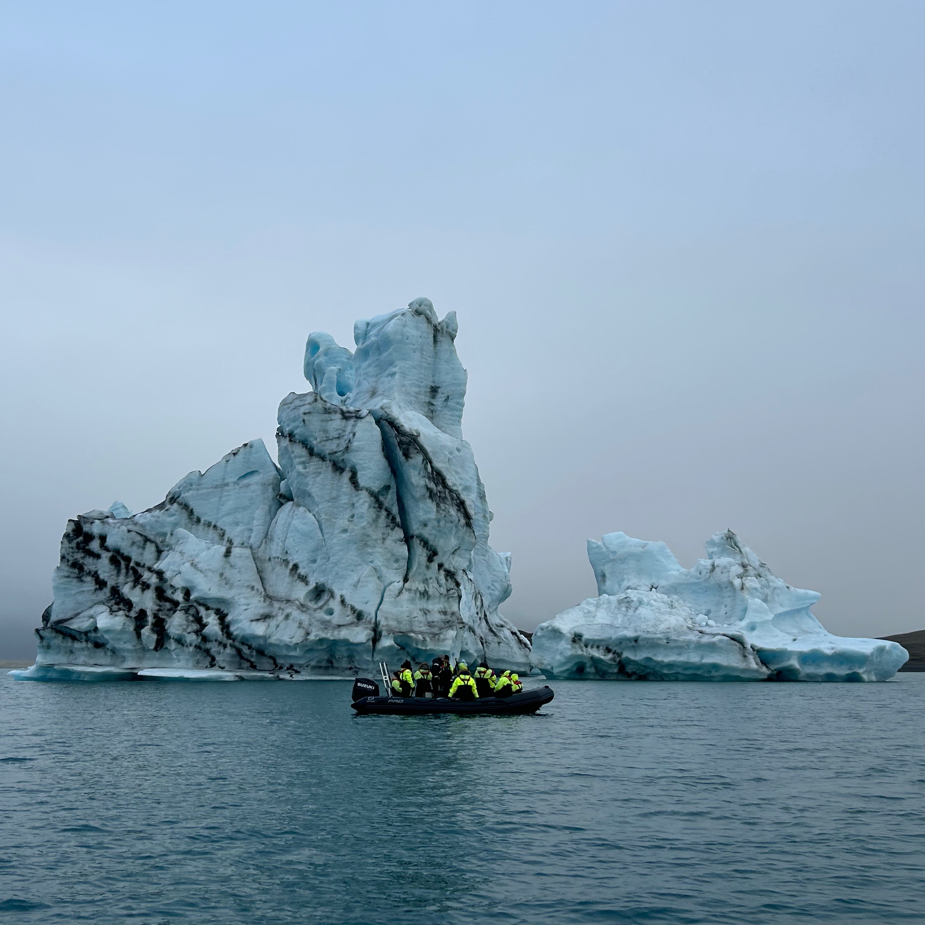 Sailing the Jökulsárlón lagoon is a must-do activity in Iceland. It is an experience that takes you deep into the lagoon and brings you close to the glacier tongue. Thus seeing the great wall of ice. In addition, you zigzag through the icebergs, but always leave a safety distance, because you do not know when a piece of ice is going to break off or when an iceberg can «flip».