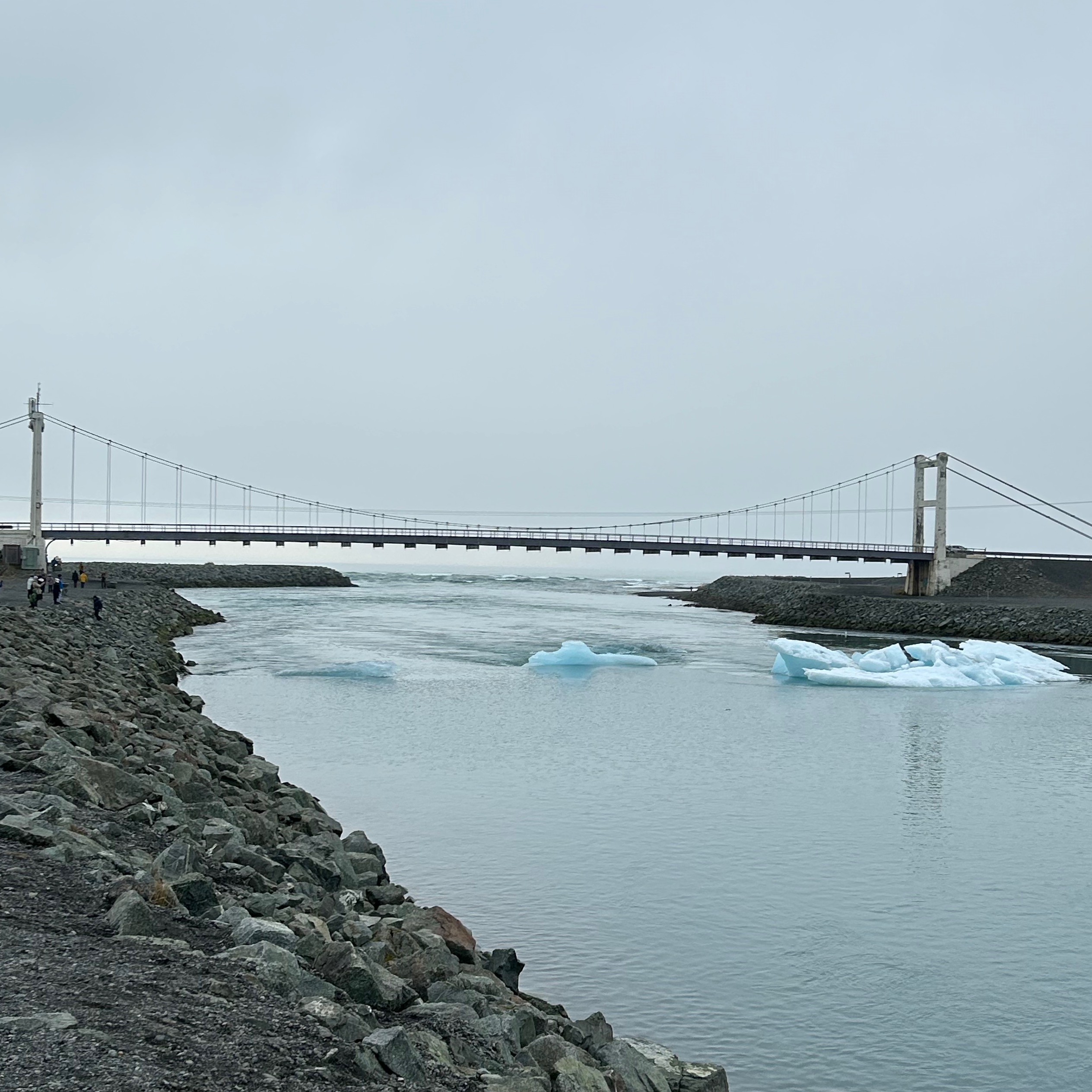 In this lagoon you will see icebergs that get smaller and smaller as they approach the Highway 1 bridge. This bridge acts as a funnel, as it only allows smaller icebergs to pass underneath and reach the sea.