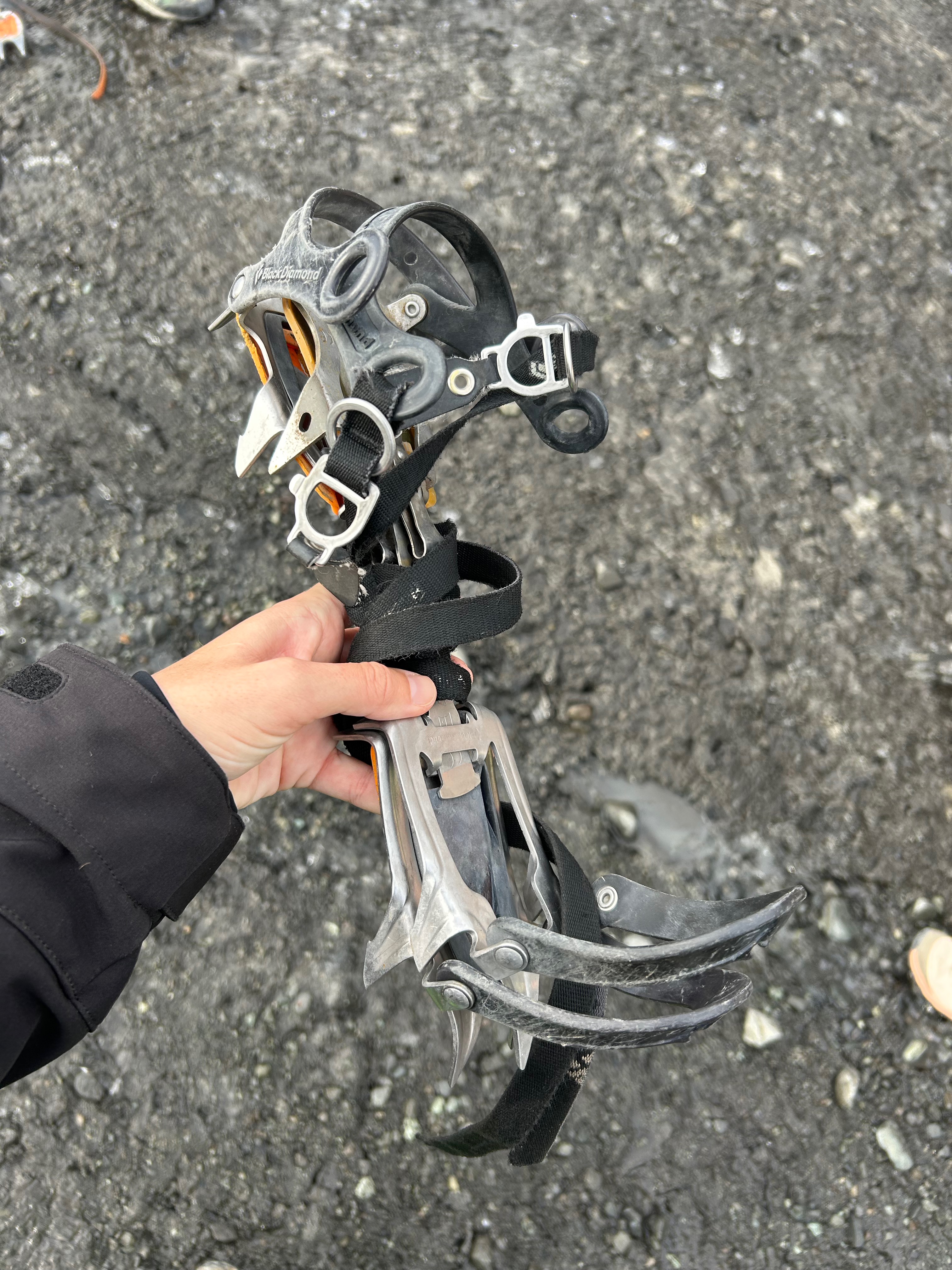 - The route starts on the ground and you go with your own shoes, but as soon as you get to the ice, you have to use crampons. They give you an explanation of how to put them on and then do a check before you start walking on the ice safely.