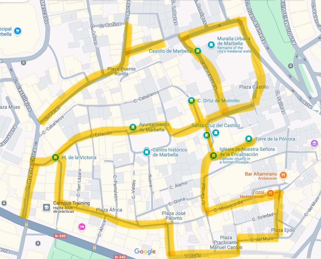 Para ello, te dejo las siguientes calles, que si las sigues en orden te permitirán terminar el recorrido.