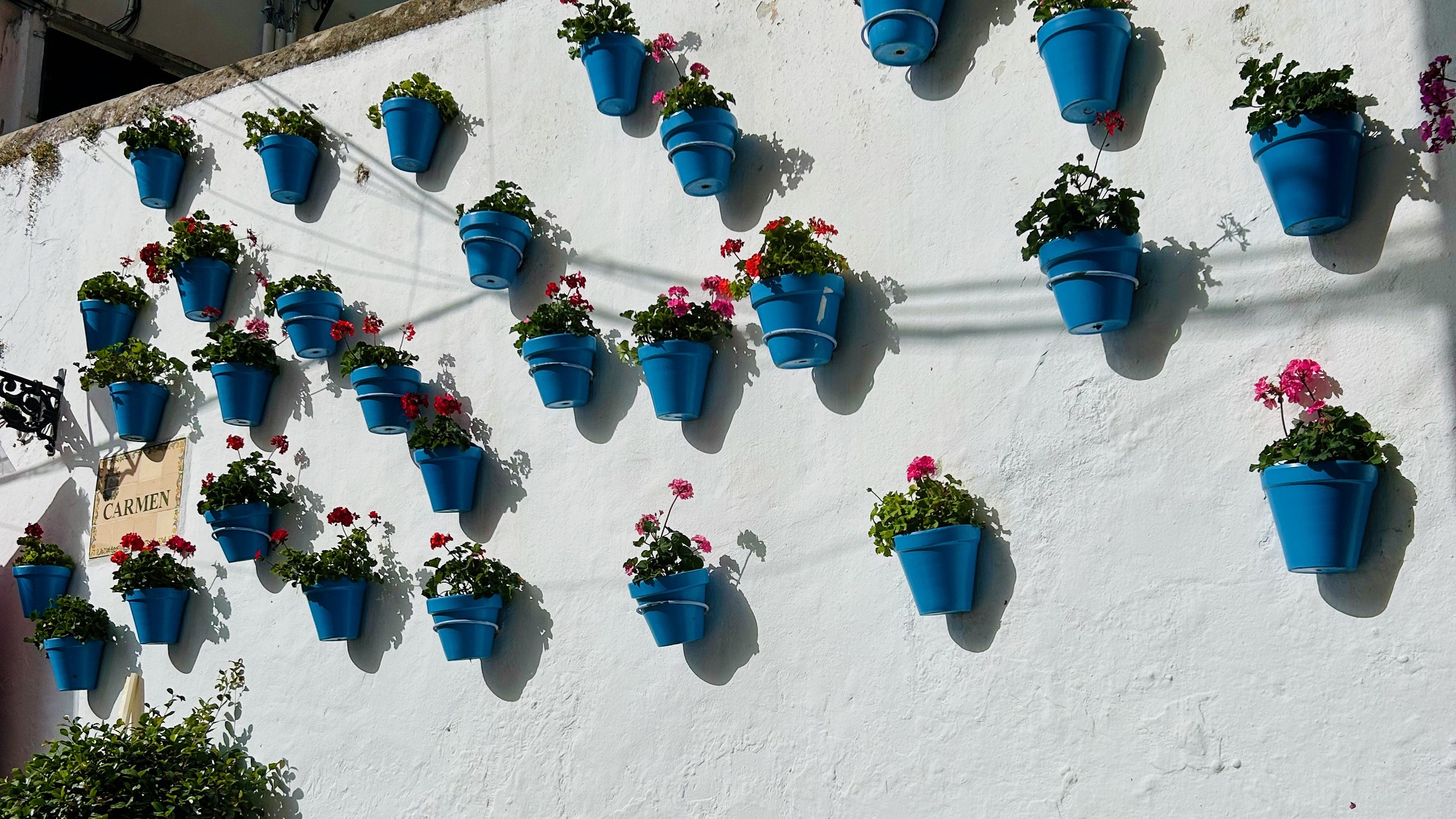 Tras cruzar la Plaza de los Naranjos y cogiendo la calle Plaza General Chinchilla, se llega a la calle del Carmen. Una calle estrecha y pequeña, pero que es un sitio típico para hacerse una foto con los tiestos con flores colgados en la pared blanca.