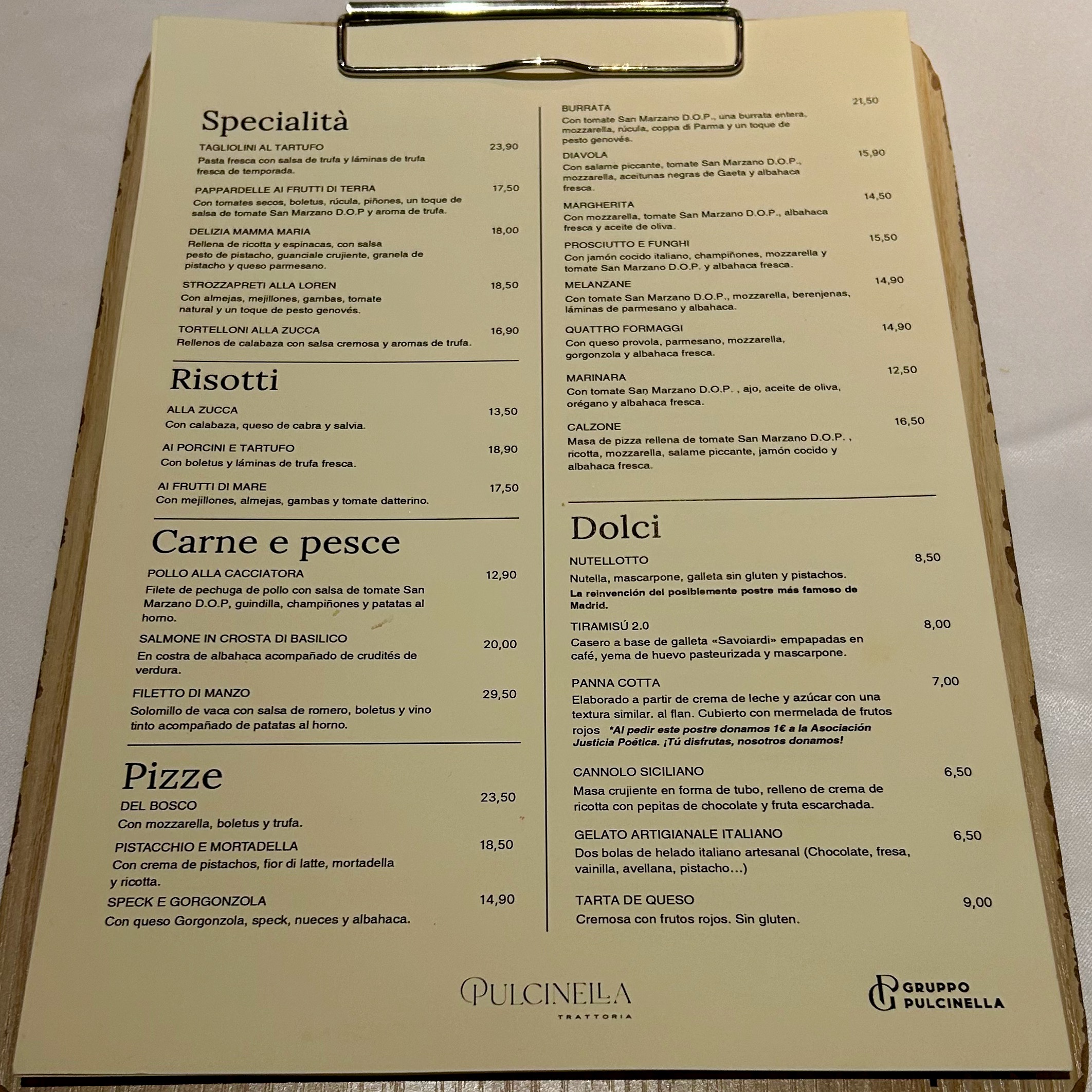 Todo sobre nuestra experiencia en Trattoria Pulcinella.