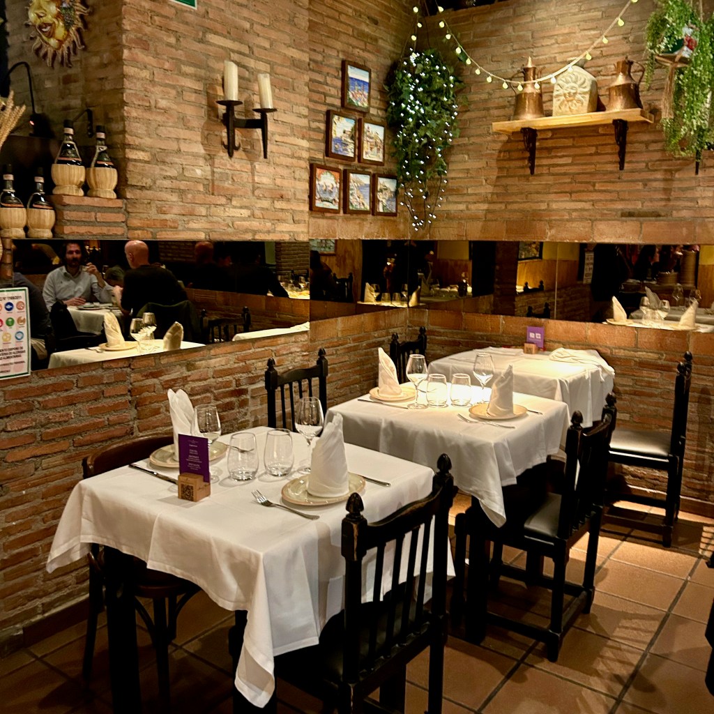 El restaurante es pequeño y hay muchas mesas, que están bastante pegadas entre ellas. En nuestro caso teníamos la mesa pegada a la pared, por lo que las 2 personas que tenían que pasar pegadas a ésta casi no cabían y del otro lado, las otras 2 personas casi daba con la mesa de detrás.